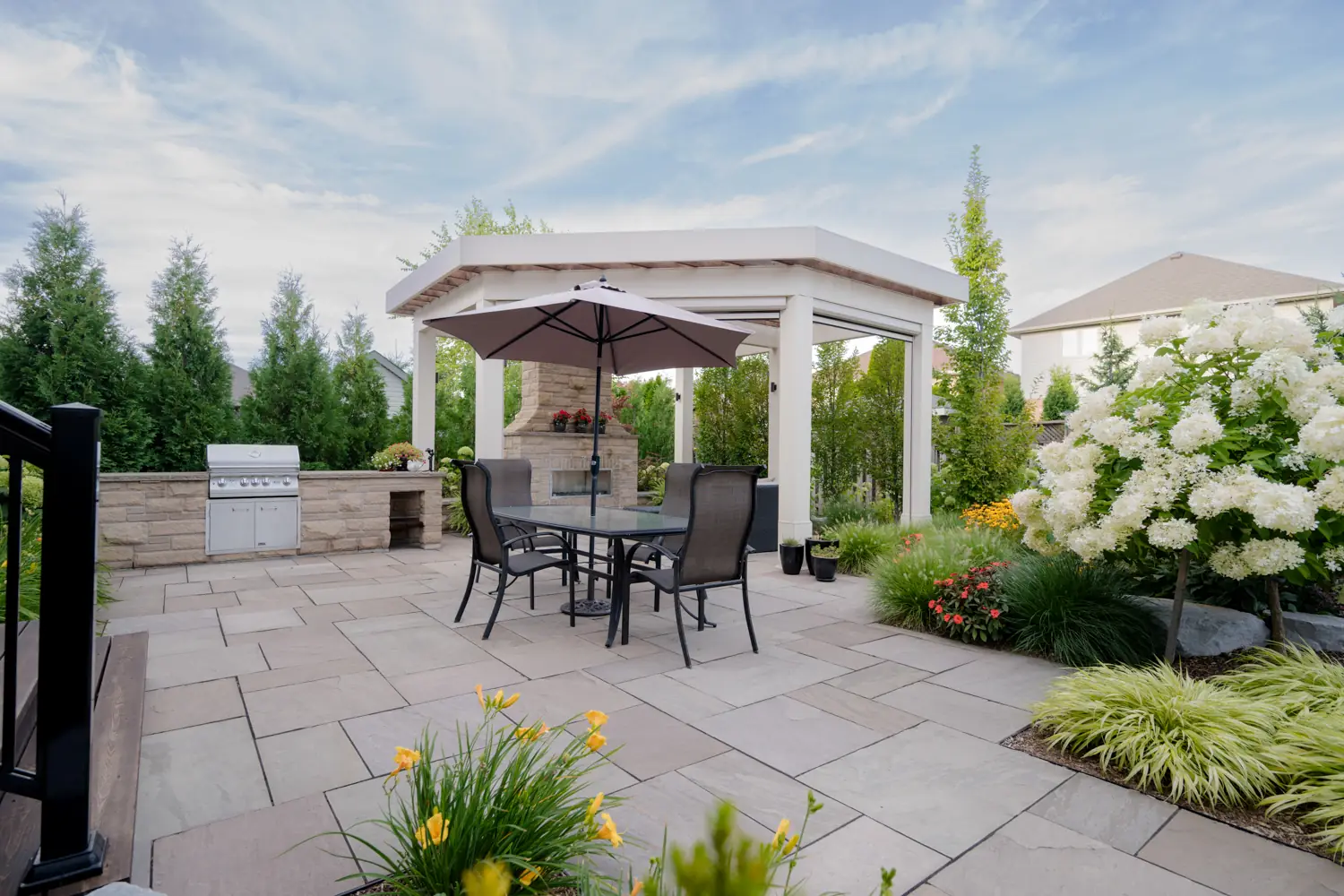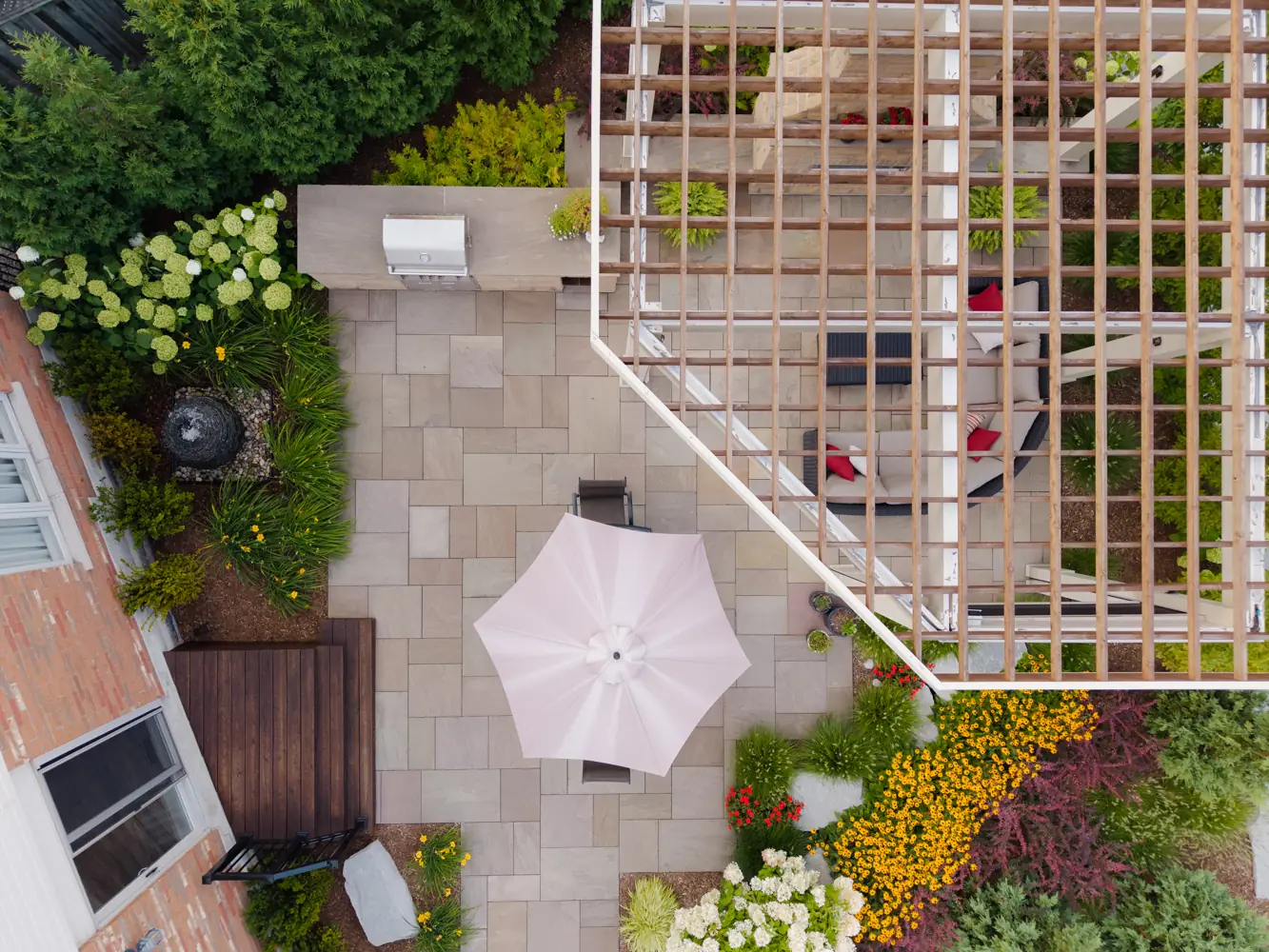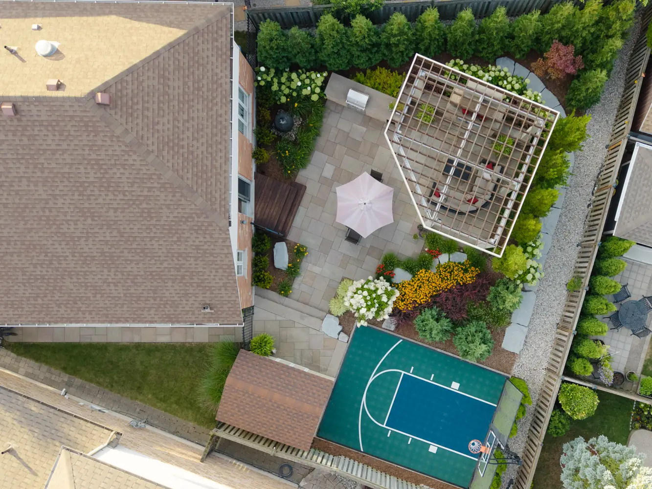 This Hamilton, Ontario backyard was redesigned in two phases to create a family-oriented space with multiple amenities while making the most of a compact lot. The goal was to transform an underused yard into a setting that balances recreation, entertaining, and seasonal beauty.