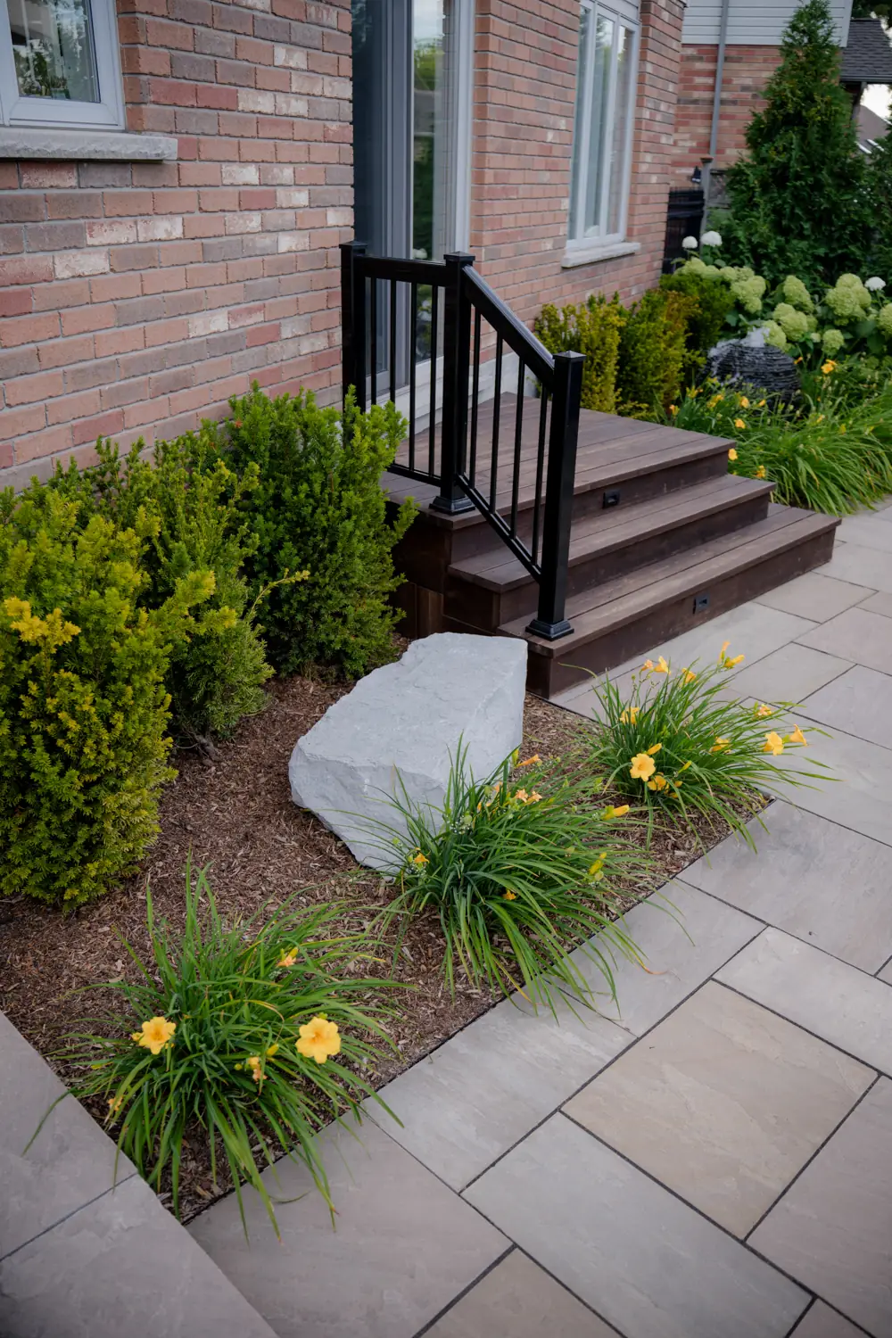 The angled layout of the home and yard created challenges that were resolved with a subtly angled service deck and smart drainage solutions. These adjustments not only solved structural issues but also gave the family a stable, low-maintenance foundation for enjoying the gardens as they matured, turning limitations into long-term strengths.